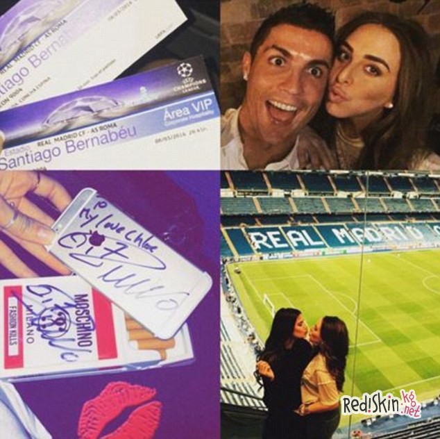 Девушка выложила в сеть серию снимков, на одном из них была изображена надпись Роналду: "Моя любовь Хлоя". Криштиану обеспечил Грин с подружкой местами в VIP-зоне, чтобы девушки насладились ответным матчем Реала. Один из фолловеров написал комментарий к фото: "Криштиану, вы и ваша подруга выглядите мило вместе. Я желаю вам обоим счастья". Следует отметить, что издание Daily mail связалось с представителями звезд для последующих комментариев.