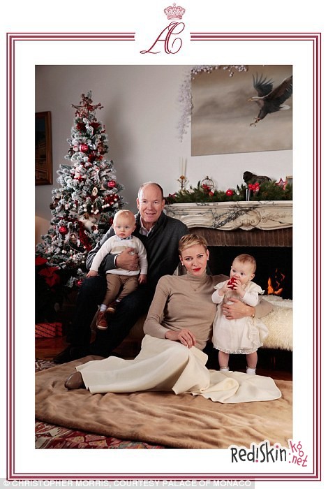 Княгиня Шарлин и князь Монако Альберт выпустили свою первую семейную рождественскую открытку.