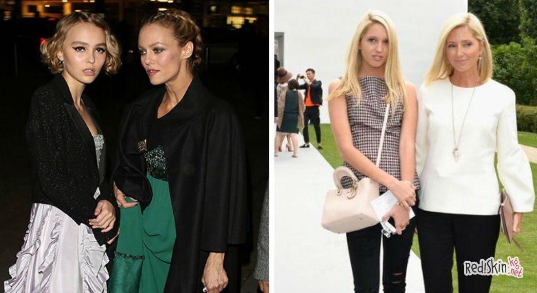 Двойники мать-дочь: Ванесса Паради и Лили Роуз Депп (слева), Принцесса Мари-Шанталь из Греции и принцесса Олимпия