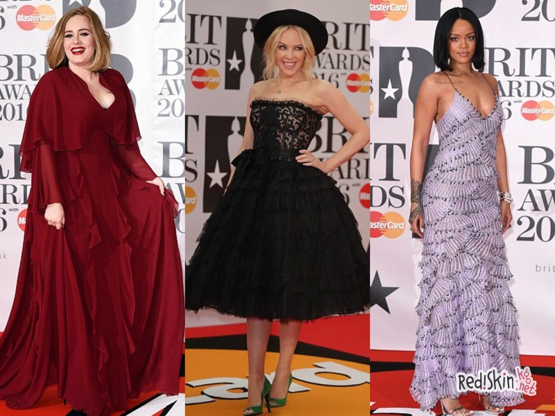В 2016 году церемония вручения музыкальных наград в Великобритании BRIT Awards стартовала в среду ночью. Звезды музыки и шоу-бизнеса встретились на O2 Arena в Лондоне. Первыми на красной ковровой дорожке позировали перед папарацци международные иконы мира музыки - Рианна, Кайли Миноуг и Адель.