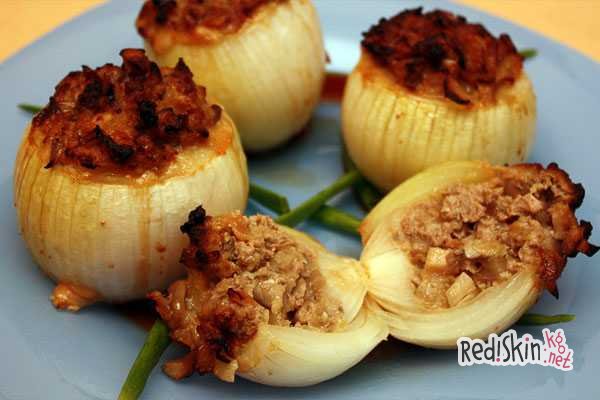Лук, фаршированный фаршем индейки