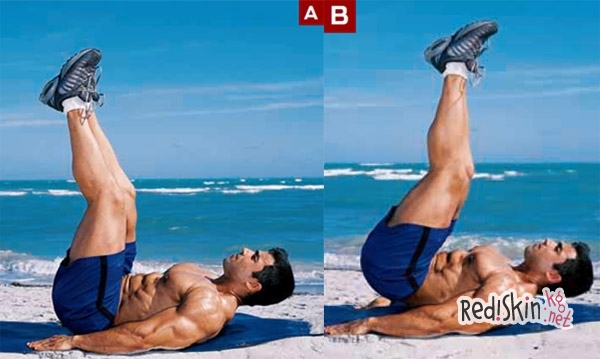 Перейдем к самой главной части тела, которая беспокоит каждую девушку — животик, а точнее отсутствие пресса. Как качать пресс всем известно, не будем долго на этом останавливаться, а обратим наше внимание на нижнюю часть живота. Нижний пресс накачать намного трудней, чем кубики в верхней части. Существует множество вариантов для достижения рельефности, но поднятие ног из положения лежа заменяет все остальные. Лягте на пол, руки можете расположить вдоль тела, за головой, как удобно. Поднимайте ноги не спеша от пола до уровня, перпендикулярного телу, затем приподнимите таз и потяните носки вверх. Зафиксируйте свое тело в таком положении секунды 2 и вернитесь в исходное положение. Это упражнение следует выполнять 4 подхода по 30 раз. Внимание!!! Ни в коем случае не делайте таких нагрузок в первые 2-3 тренировки. Нужно постепенно подходить к такому рубежу.